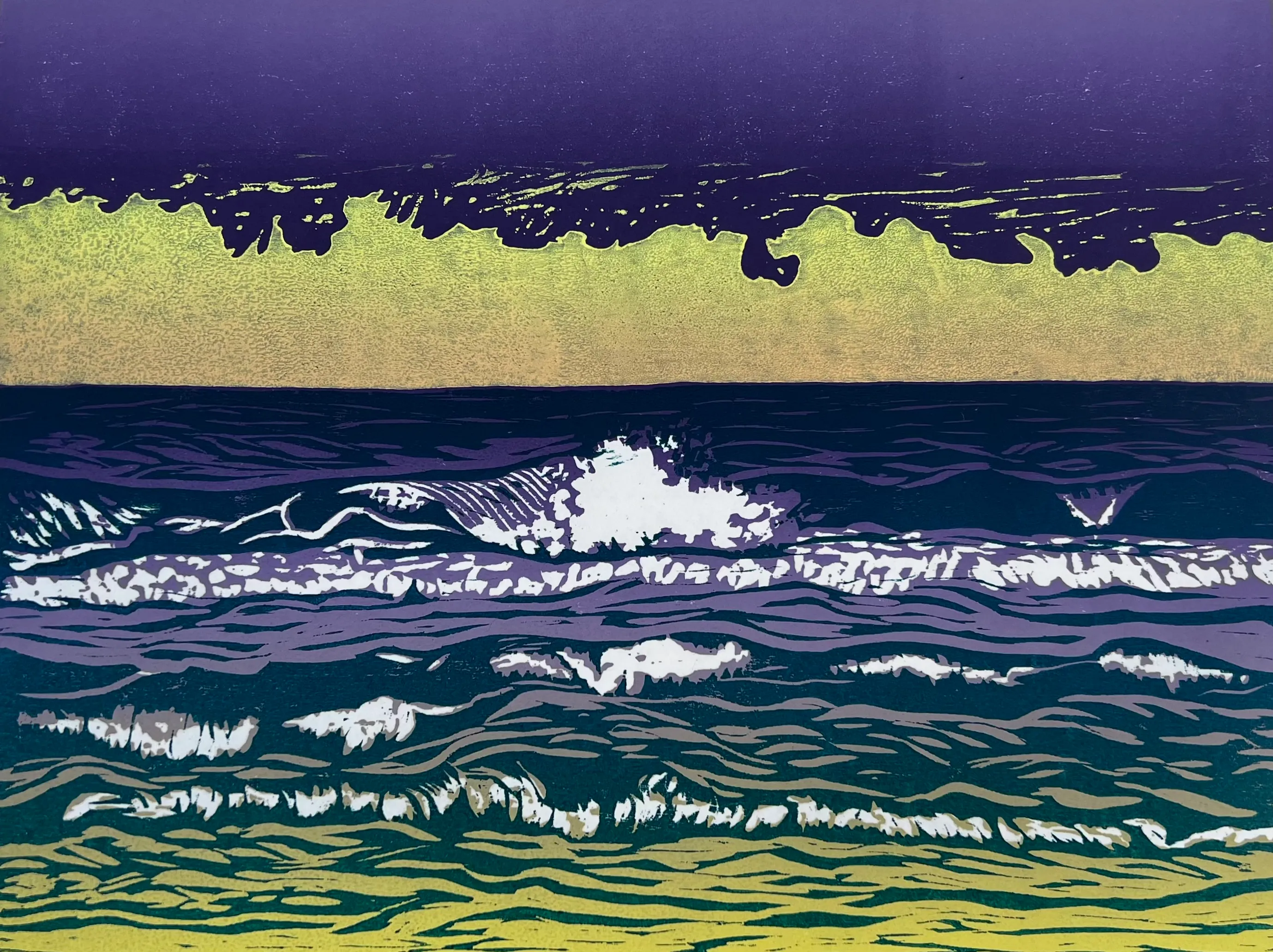 This print was originally created as a commission. I like the way the depth of the water comes though in the colour and how the swirls capture something of the tide coming into shore.